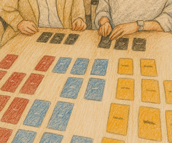 Abbildung 1: Nachgestellte Szene während des Kartenspiels (mit ChatGPT entfremdet dargestellt.)